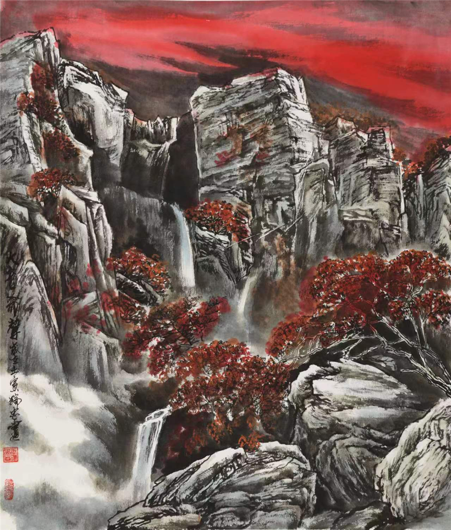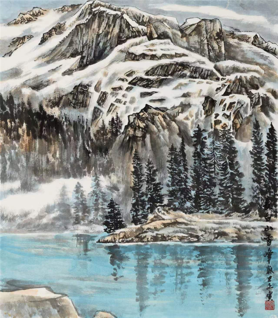 2018年应邀去韩国参加中韩书画交流展,作品《雪城圣峰》被韩国博物馆收藏;